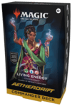 100-kartový Commander deck z edície Aetherdrift - Living Energy je zeleno-modro-červený deck. Každý Commander deck obsahuje aj 2 kartový Collector Booster Sample Pack a 2 Traditional Foil Legendary cards.