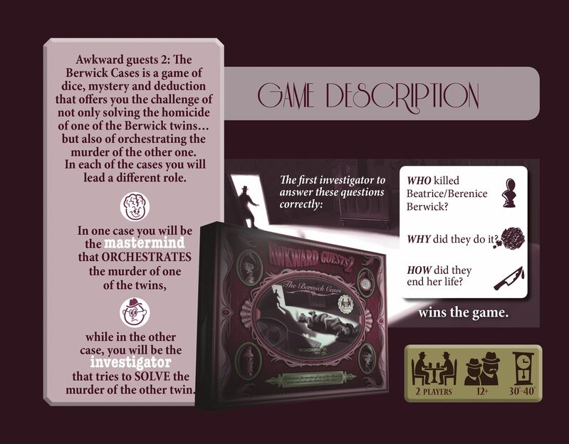 V detektívno-dedukčnej hre Awkward Guests 2: The Berwick Cases sa stretnú dvaja hráči (alebo aj tímy) v súboji o to, komu sa podarí ako prvému vyriešiť vraždu jednej zo sestier Berwickových a naplánovať zasa vraždu tej druhej.