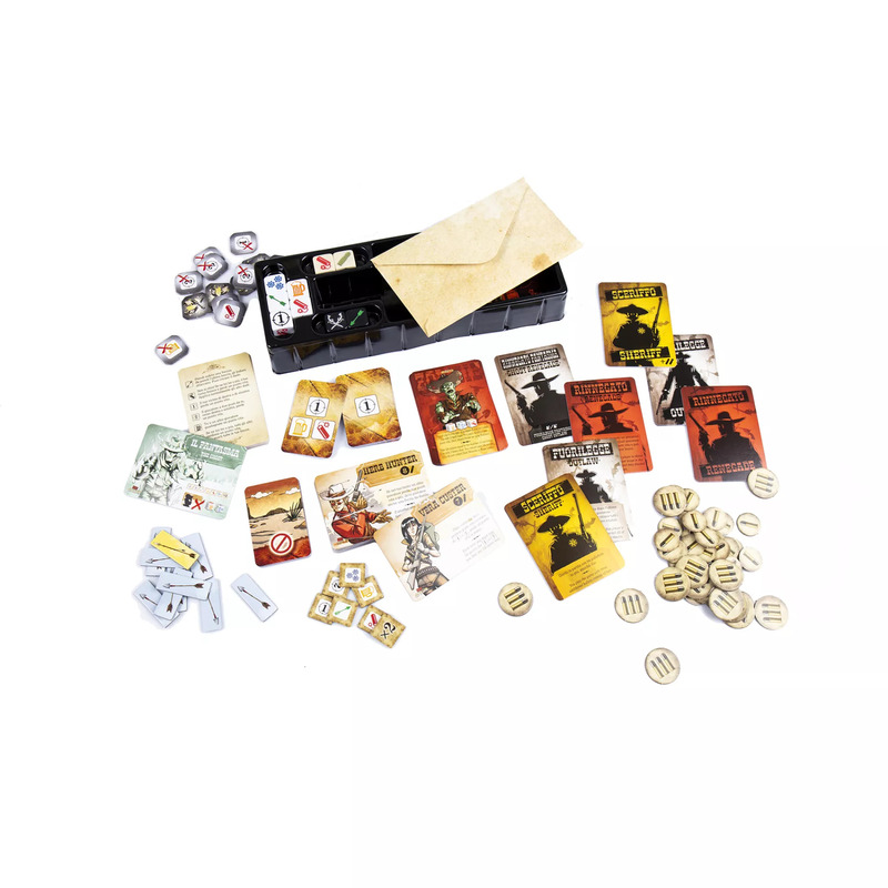 Kompletná edícia kockovej verzie Bang!, vďaka ktorej si užijete mnoho zábavy pri naháňaní banditov, odpadlíka, alebo naopak skúsite ovládnuť mesto tým, že zabijete šerifa. Pri tejto rýchlejšej verzii obľúbenej hry Bang! sa zabavia 3-8 hráči.