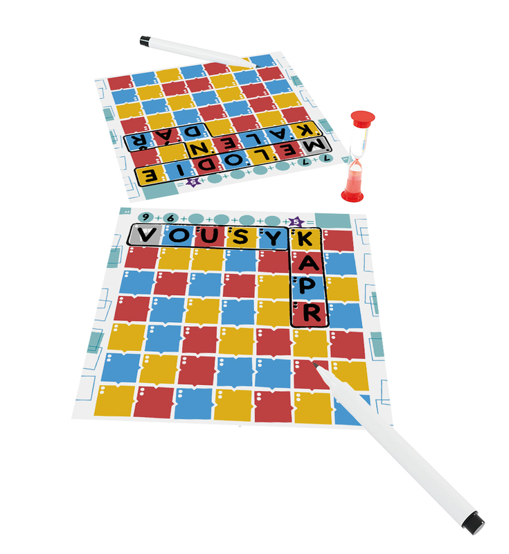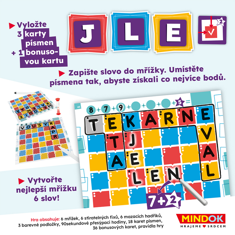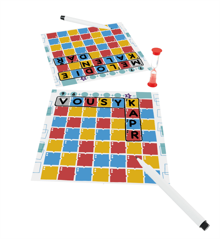Vašou úlohou bude zostaviť 6 slov, ktoré sa musia vojsť do mriežky. Každé nasledujúce slovo musí nadväzovať na už predchádzajúce a nesmú sa krížiť. Na začiatku každého kola sa vylosujú tri písmená, za ktoré dostanete body (extra body dostanete aj vtedy, ak sa vám podarí umiestniť písmeno na rovnakú farbu) a bonus naviac – dĺžku slova, tému, podmienky smeru. Slová nemusia byť vždy v jednom riadku, alebo stĺpci. Kto má na konci najviac bodov, vyhráva.