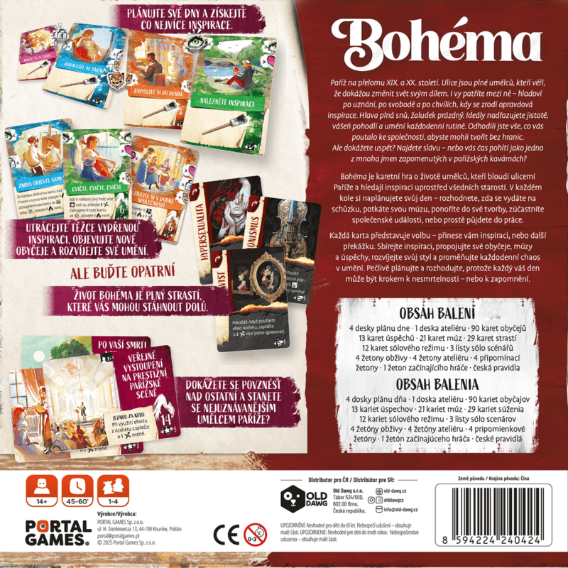 Preneste do atmosféry Paríža na prelome 19. a 20. storočia, kde sa stanete súčasťou sveta kaviarní, ateliérov a nekonečných debát o umení, pretože sa stanete bohémom. Vytvárate vzťahy a budujete si vlastnú cestu vďaka inšpiráciám a osobnými ambíciami. Treba si však dávať pozor, pretože prostredie je síce okúzľújúce, ale aj nevyspytateľné. Kto premení svoj talent na úspech? Do súboja o najväčšieho bohéma sa môžu zapojiť 1-4 hráči.