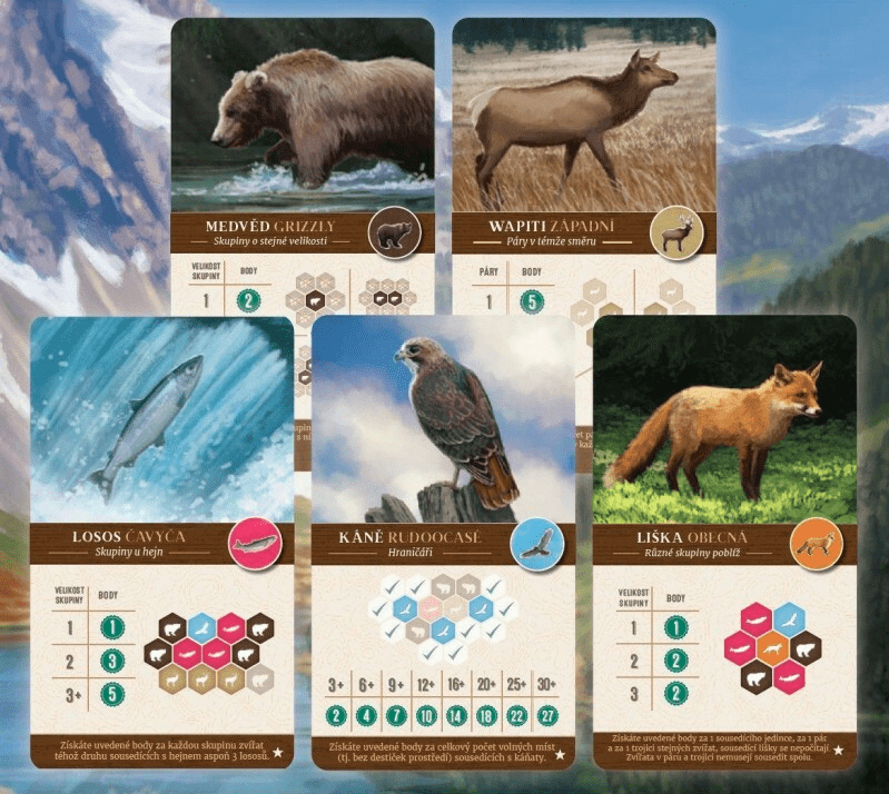 Sada piatich promo kariet k rozšíreniu Krajiny Kaskádie pre krásnu rodinnú hru Kaskádie.