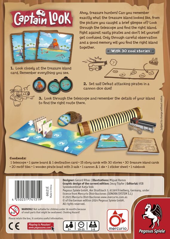 V peknej kooperatívnej detskej hre Captain Look sa ocitáte v Karabiku, kde počúvate príbehy o pirátoch a skrytých pokladoch. Podarí sa vám objaviť a zapamätať si detaily mapy, ktorú budete vidieť iba chvíľu? Hru si užije 1-6 hráčov.