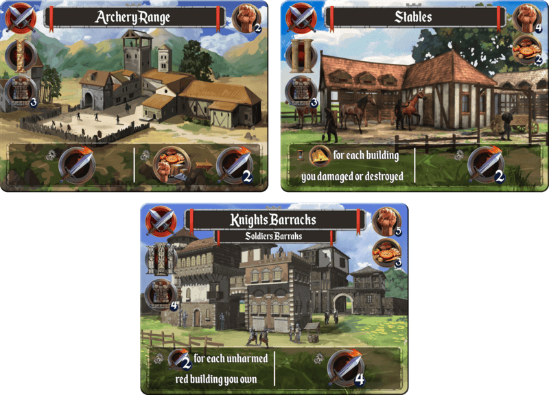 V priebehu hry musíte získavať nové karty budov a následne ich postavať, ktoré vám ponúknu rôzne výhody. Pri bojoch sa však niektoré môžu poškodiť, čo vás bude nútiť opravovať ich a môže to ovplyvniť váš rozvoj. Na stavbu všetkých budov potrebujete aj suroviny a spravovanie surovín je zásadná otázka úspechu v tejto hre. Musíte nájsť správnu kombináciu obchodovania, stavania a bojov, aby ste vyhrali.