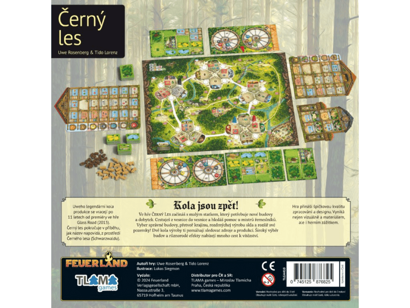 V hre Černý les každý hráč začína s malým statkom, ktorý potrebuje nové budovy a dobytok. v priebehu hry hráči cestujú z dediny do dediny a hľadajú pomoc u majstrov remeslníkov. Musia vyberať správne budovy, pretvárať krajinu, rozbiehať výrobu skla a rozširovať svoje pozemky! Zmienené kolesá výroby hráčom pomáhajú sledovať zdroje a ich produkciu. Široký výber budov a rôznorodé efekty ponúkajú mnoho strategických možností ciest k víťazstvu.