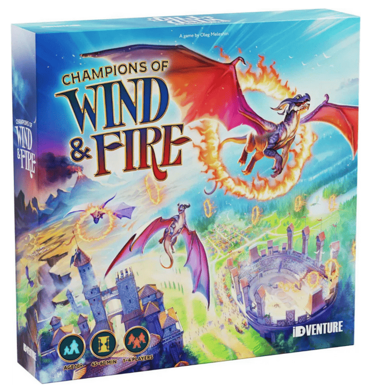 Champions of Wind & Fire je hra založená na hode kockami a výcviku drakov pre 1–4 hráčov s hernou dobou 45–60 minút. Hra kombinuje výber kociek a správu zdrojov vo fáze výcviku drakov, po ktorej nasleduje fáza turnajov so stávkovaním. Okrem toho môžu hráči kedykoľvek zahrať akčné karty a prekvapiť svojich súperov. Hoci mať najsilnejšieho draka prináša výhody, k víťazstvu vedie najmä strategické rozdelenie jeho sily medzi jednotlivé turnaje prostredníctvom stávkovania magických živlov.