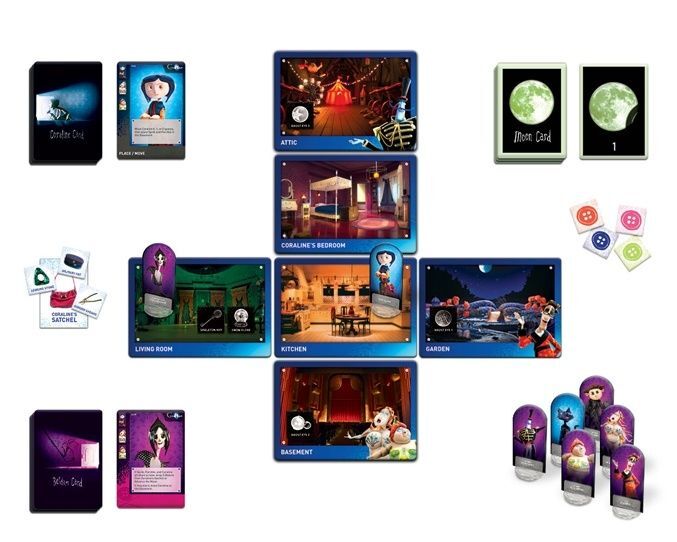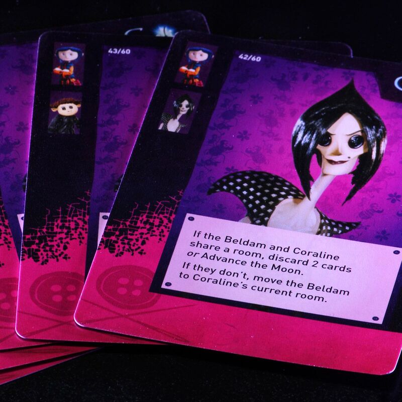 V každom ťahu si hráči vyberajú akcie zo svojich kariet príbehu, pomocou ktorých pohybujú postavičky po miestnostiach, zbierajú predmety alebo pomáhajú Koralíne napredovať v úlohe. Po vašom ťahu sa odhalí karta Beldam, ktorá môže prekaziť vaše plány – napríklad prinútiť Koralínu odhodiť predmet, posunúť mesiac, alebo pridať iné prekážky. Nástrahy aj výzvy sa stupňujú, preto je dôležité plánovať a spolupracovať.