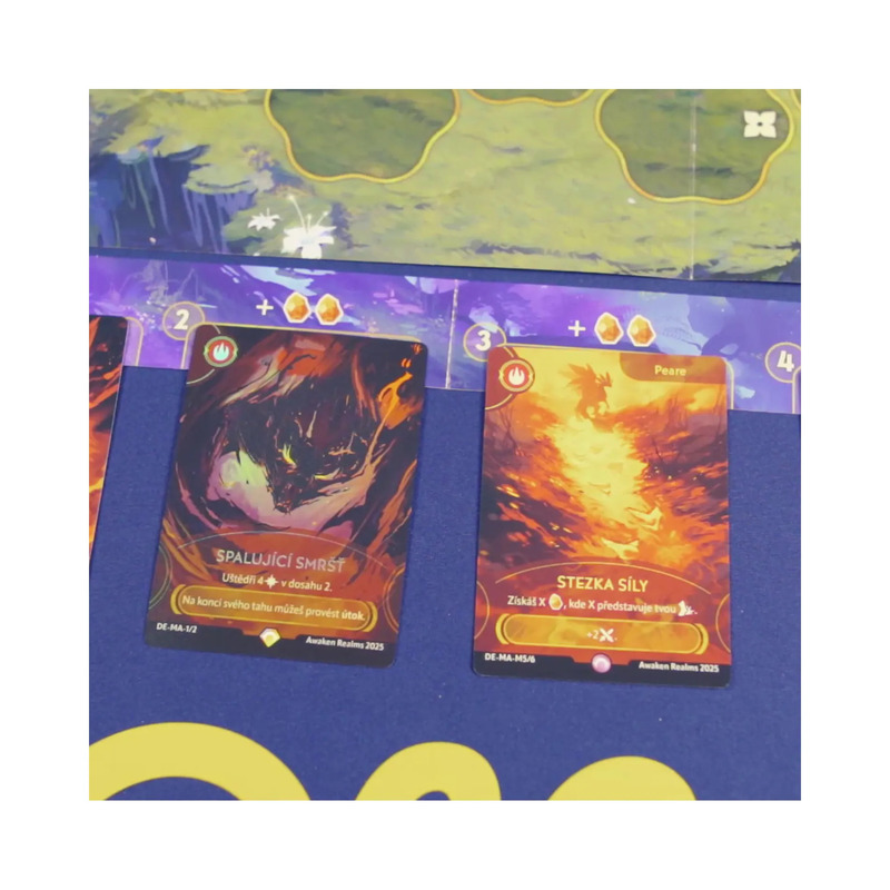 2 figúrky mystlingov, herný plán arény, 60 kariet, 20 žetónov energie, 29 ďalších žetónov