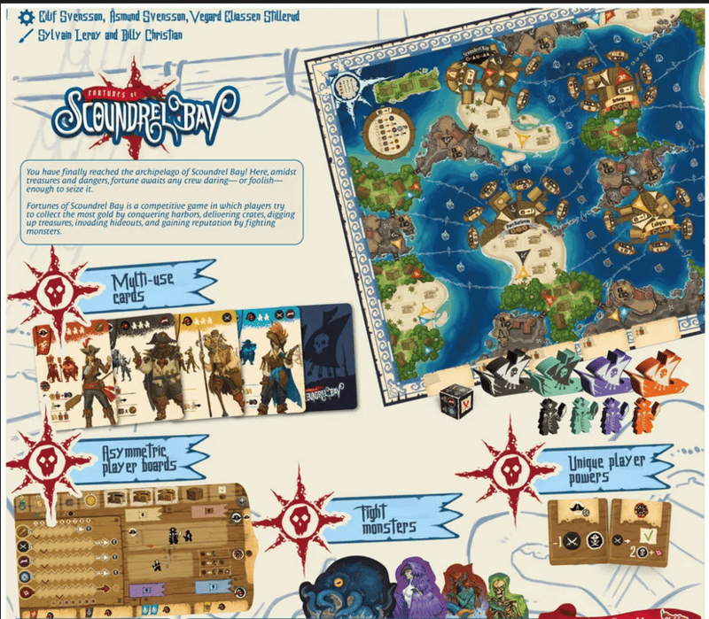 Fortunes of Scoundrel Bay je strategická pirátska stolová hra pre 1–4 hráčov, v ktorej sa hráči ujímajú úloh kapitánov pirátskych lodí a súperia o to, kto si získa najväčšie bohatstvo a slávu v tajomnom súostroví Scoundrel Bay. Hráči sa snažia zhromaždiť čo najviac zlata, a to rôznymi aktivitami, ako je prepadávanie prístavov, hľadanie úkrytov, doručovanie tovarov, hľadanie pokladov či budovanie reputácie bojom s monštrami.