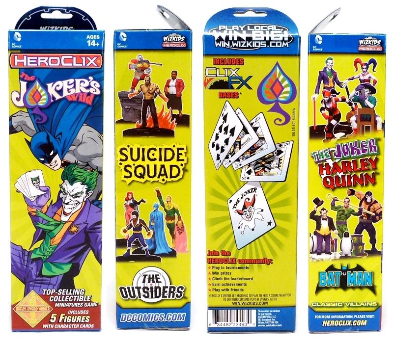 HeroClix: The Joker‘s Wild! Booster Pack obsahuje 5 náhodných figúrok zo série Joker‘s Wild!, v ktorých okrem Jokera a Batmana môžete nájsť napríklad Hádankára, Mr. Freeza a mnohých iných zloduchov z Gotham City, vrátane postav zo Suicide Squad, ale taktiež aj Wonder Woman či FireFly alebo Robina a mnohých ďalších.