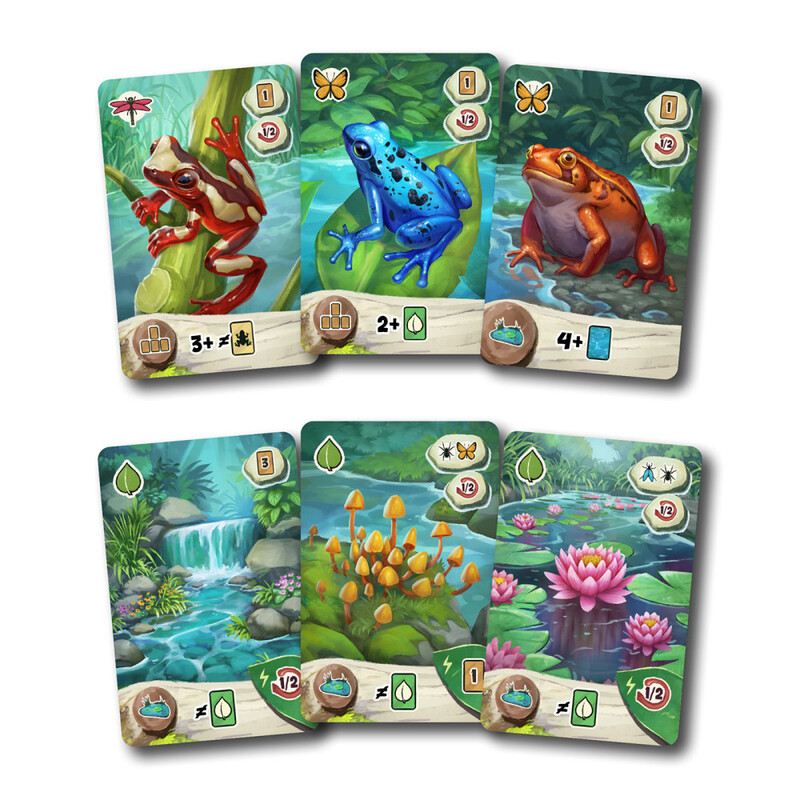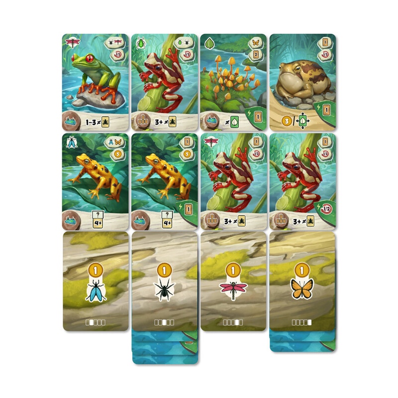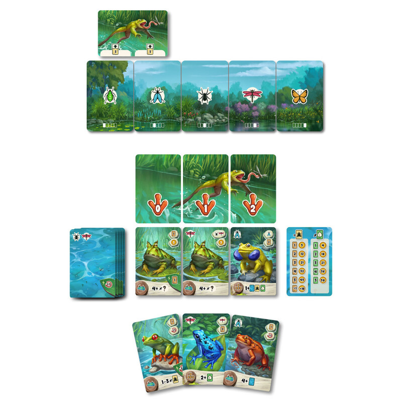 Vo svojom ťahu si vyberiete karty zo spoločnej ponuky a následne ich umiestníte do mriežky jazierka, aby vám priniesli čo najviac bodov. Každá má iné bodovacie podmienky a zároveň získate body, ak budú susediť s rovnakými žabami. Pri svojom ťahu budete ovplyvnení aj skákajúcou žabou v strede plánu, ktorá určí vaše možnosti (ale hýbu ňou všetci hráči). Okrem ukladania žiab treba myslieť aj na to, že žaby sa chcú aj kŕmiť a preto pre ne budete musieť v priebehu hry hľadať aj potravu.