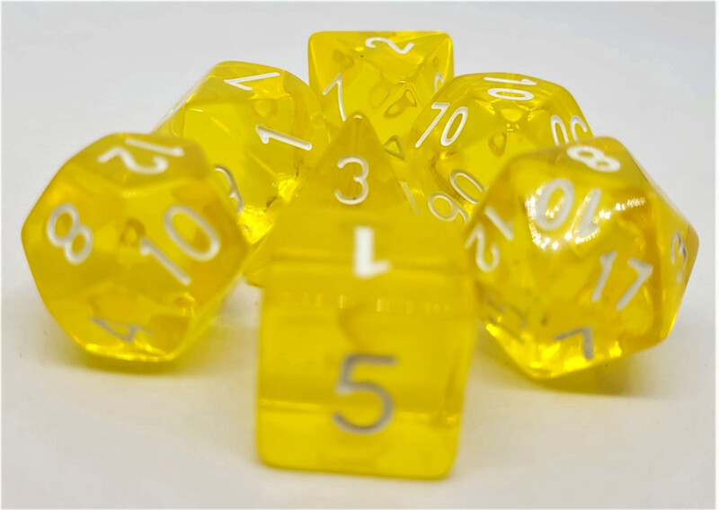 Kocky RPG set Transparent Yellow (7ks) je kompletná sada kociek vhodných na hranie RPG hier.
