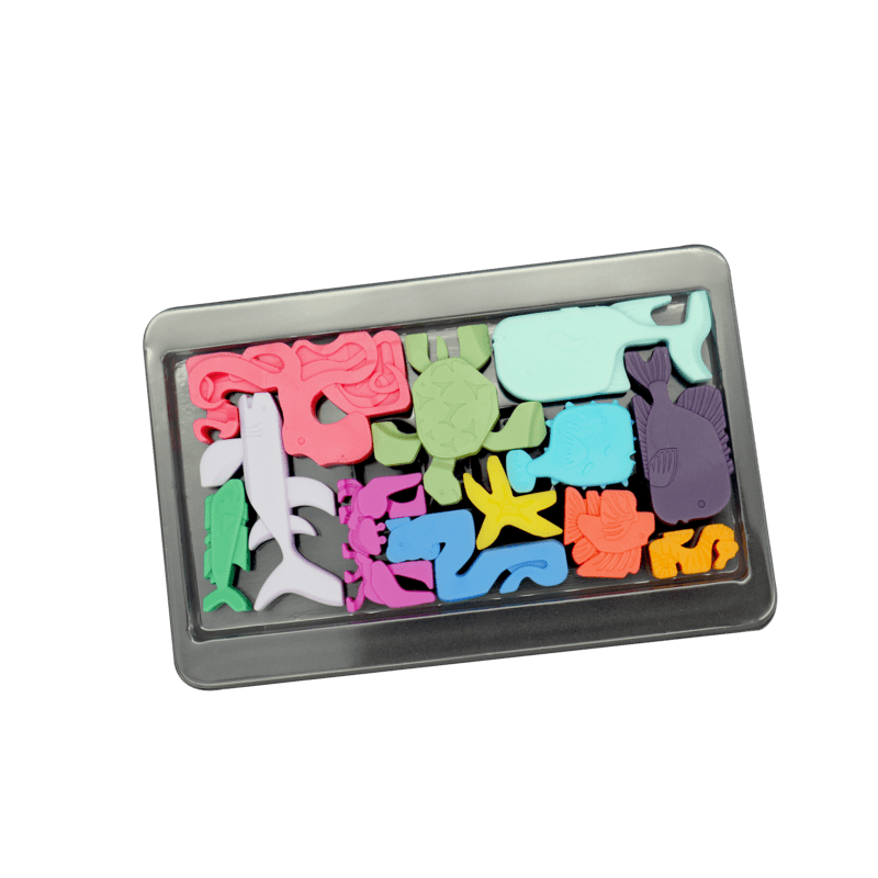 48 skladačiek, 48 riešení, 12 morských tvorov, 1 cestovné balenie