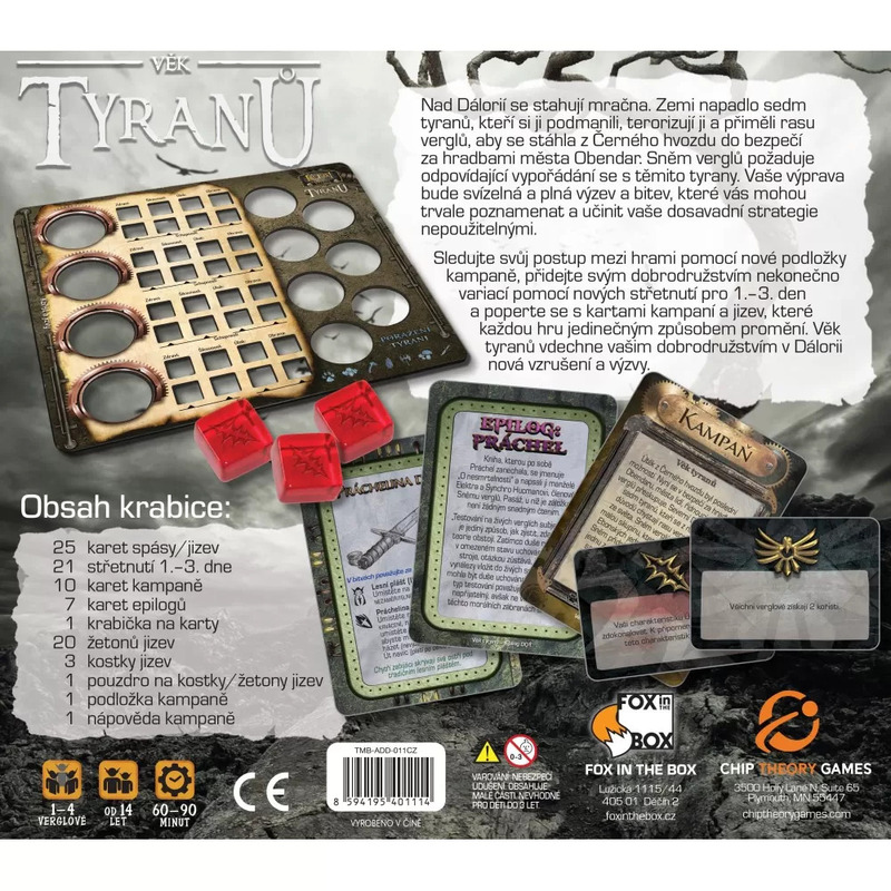 Vďaka veľkému príbehovému rozšíreniu Věk tyranů pre hru Kosti jsou vrženy objavíte nové nebezpečenstvá, pretože krajinu Daloria napadlo sedem tyranov, ktorí ju terorizujú a verglovia sa museli stiahnuť za hradby mesta Obendar. Vašou úlohou bude vysporiadať sa týmito tyranmi. Podarí sa vám to?