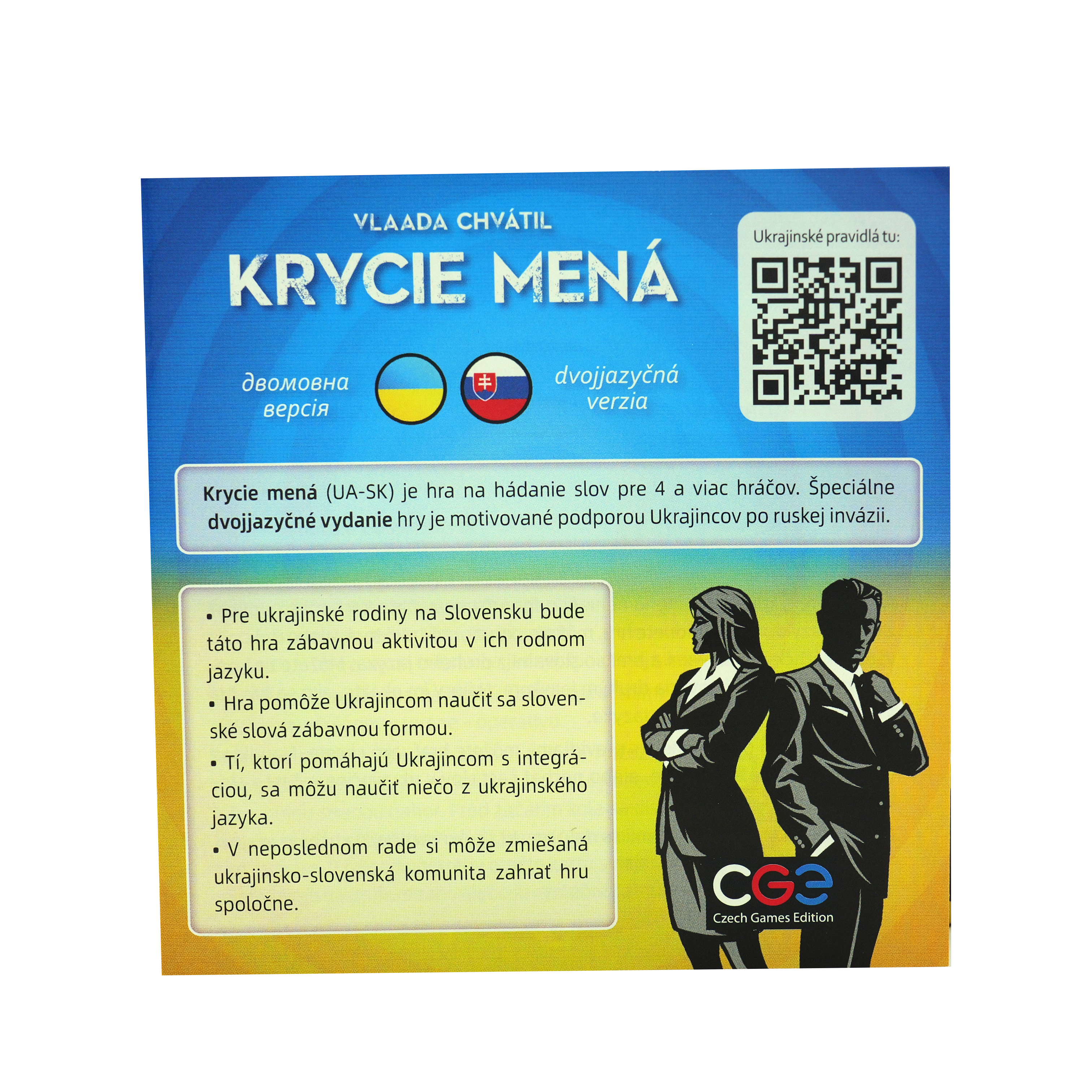 Špeciálna verzia mimoriadne obľúbenej hry Krycie mená. Ide o dvojjazyčnú (slovensko-ukrajinskú) verziu, kde na jednej strane je slovenské slovíčko foneticky prepísané do ukrajinčiny, na druhej strane je to isté slovo v ukrajinčine s fonetickým prepisom do slovenčiny.