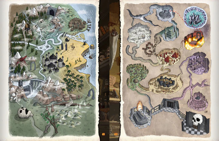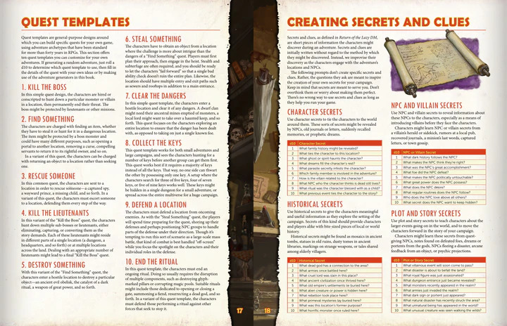 Každá strana tejto 64-stranovej knihy ponúka užitočné návody, generátor dobrodružstiev, či celých kampaní, alebo všestrannú mapu, v ktorej si môžete vytvoriť vlastné dobrodružstvá. Patria sem: