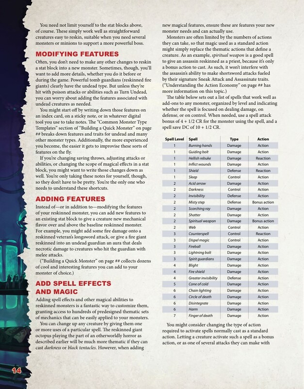 Každá strana tejto 128-stranovej knihy ponúka tipy, rady, inštrukcie a príklady spôsobov, ako zdynamičniť vaše príšery a bojové stretnutia založené na stvoreniach – a ukázať vám, ako s príšerami robiť viac a zároveň si zachovať jednoduchú prípravu na hru.