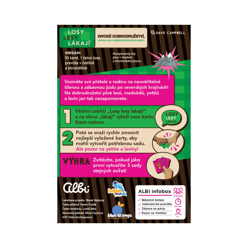 V rýchlej postrehovej hre pre 3-6 hráčov Losy lesy lákají sa snažíte čo najrýchlejšie pozbierať sady zvieratiek v severskom dobrodružstve.