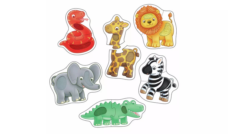 Tieto dvojdielne skladačky zvieratiek (leva, slona, žirafy, krokodíla, zebry a hada) sa perfektne hodia do detských ručičiek a pomôžu so zlepšovaním jemnej motoriky. Okrem toho majú rôzne povrchy pre zlepšenie zmyslového vnímamia.