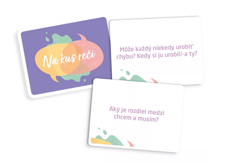 Variant Na kus reči – So školákmi pozýva deti do sveta rozhovorov, nápadov a objavovania. Každá karta obsahuje hravé otázky, ktoré povzbudia k rozprávaniu aj menej smelé deti.