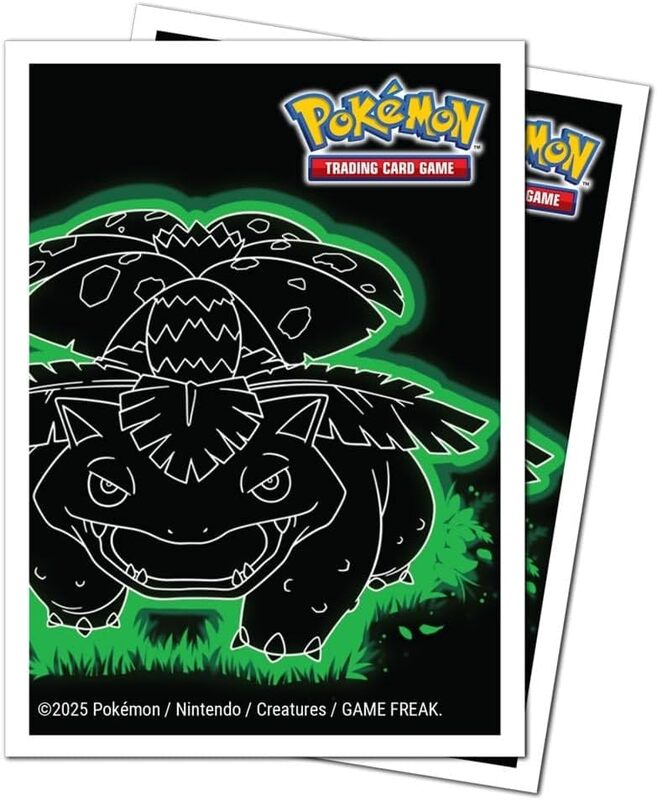 Obaly Ultra Pro na karty určené na ochranu kariet hry Pokémon TCG, ako aj iných TCG hier s motívom obľúbeného Pokémona Venusaur v neónovom prevedení.