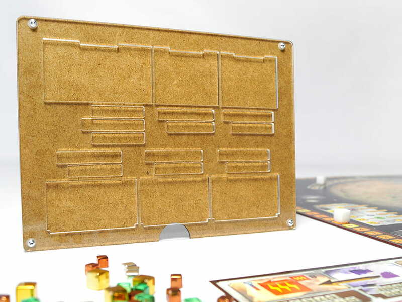 Vďaka organizéru môžete mať počas hrania poriadok a prehľad v produkcii vďaka tomu, že kocky vkladáte do špeciálnych políčok. Takisto aj ostatné komponenty potrebné počas hrania vďaka nemu zostanú na svojom mieste.
