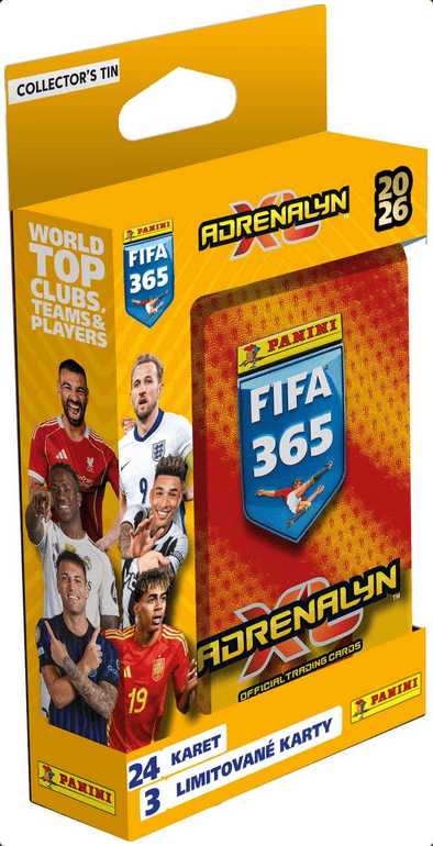 Oficiálne licencované zberateľské karty Panini FIFA 365 2025/2026. Celý produkt je zabalený v krásnej a praktickej plechovej krabičke.
