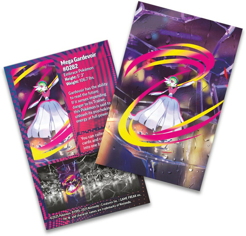 Pokémon Mega Heroes Mini Tin Gardevoir je malá plechová škatuľka plná nových kariet zberateľskej hry Pokémon TCG. Obsahuje 2 boostre (balíčky) z edície Mega Evolution. V balení je okrem toho aj 1 hárok nálepiek.