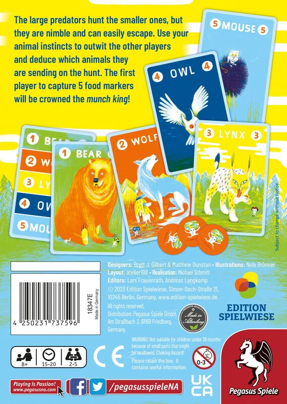Každý má na začiatku niekoľko kariet zvierat na ruke a rozhoduje sa, ktoré pošle na lov. Väčšie zvieratá požierajú menšie, takže musíte odhadovať, čo pošlú súperi na lov. Väčšie zvieratá síce ľahšie lovia, ale prinášajú aj menej bodov. Kto bol najúspešnejší počas lovu, získa žetón jedla. Kto získa 5 žetónov, vyhráva hru.
