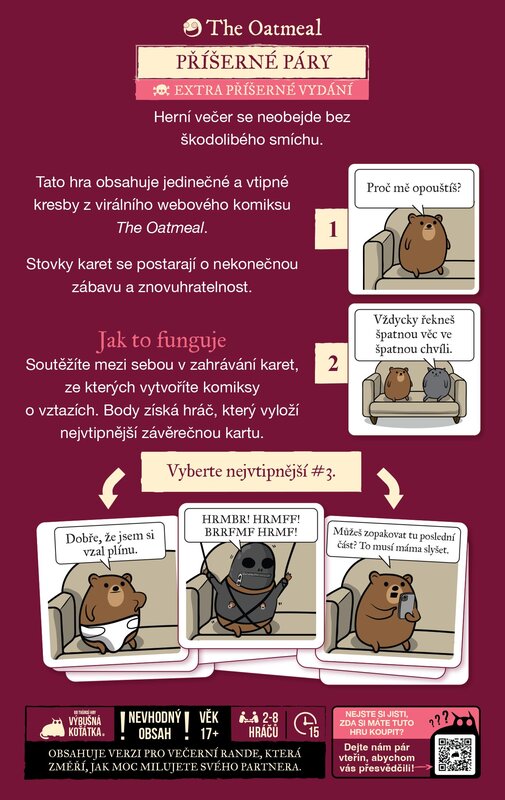 V mimoriadne drsnej párty hre Příšerné páry sa hráči snažia vytvoriť neprístojné komiksy zložené z troch obrázkov, komu sa podarí vytvoriť najvtipnejšie komiksy, vyhráva dané kolo. Túto hru môžu hrať 2-8 hráči.