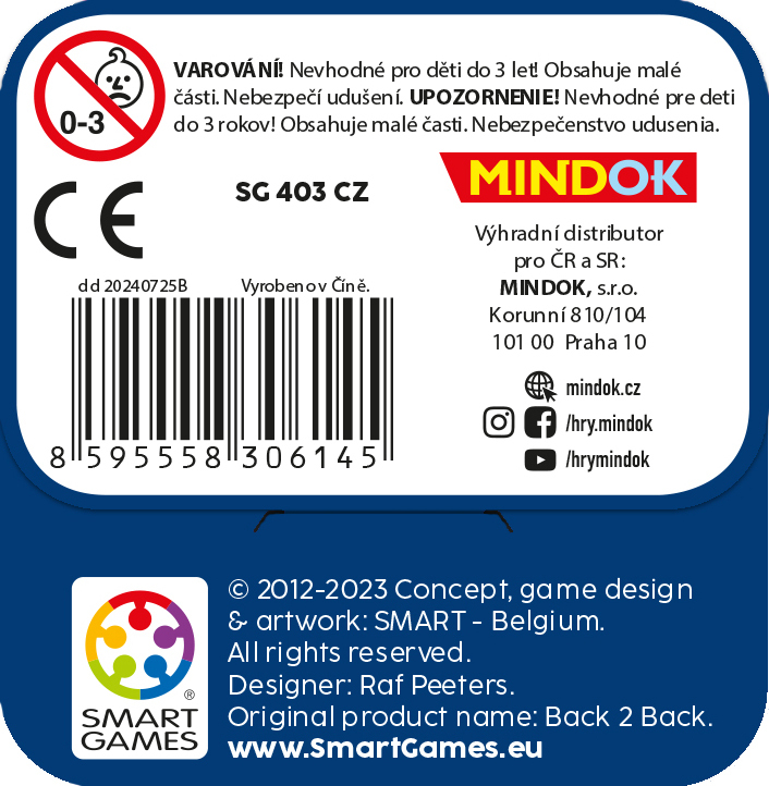 V malom šikovnom hlavolame Reverso z edície Smart bude vašou úlohou usporiadať jednotlivé dieliky podľa zadania, aby zapadli na svoje miesto. Znie to jednoducho? Nie tak celkom. Každý dielik má dva úchyty a vy sa musíte rozhodnúť, ktorý použijete a či ho zasuniete spredu, alebo zozadu.
