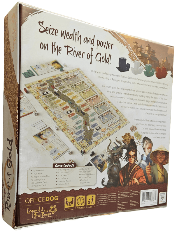 V náročnej strategickej hre River of Gold sa 2-4 hráči stanú obchodníkmi v kraji Rokugan, ktorí súperia o vplyv a možnosť plaviť sa po rieke, vďaka čomu budú bohatnúť. Kto sa stane najväčším obchodníkom?