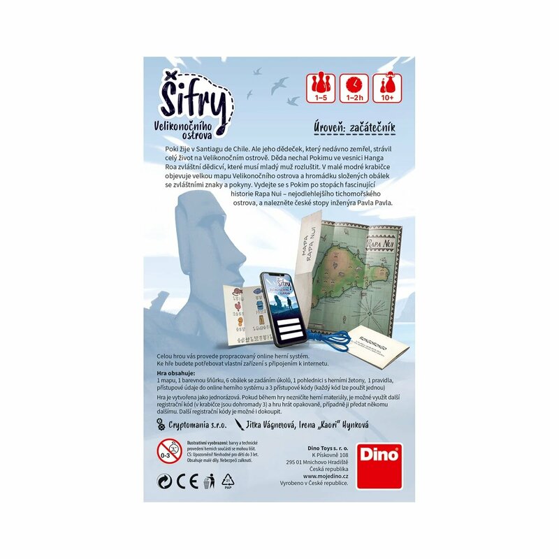Odhaľte tajomstvá Veľkonočného Ostrova (alebo ako mu hovoria domorodci Rapa Nui), ktoré zanechal jednému študentovi jeho dedko (on predtým žil na tomto ostrove). Podarí sa vám vylúštiť všetky šifry v krabičke Šifry Velikonočního ostrova? Môžete vyskúšaš riešiť tieto šifry sám, ale viac hláv toho viac vie, takže sa zabaví až 6 hráčov.