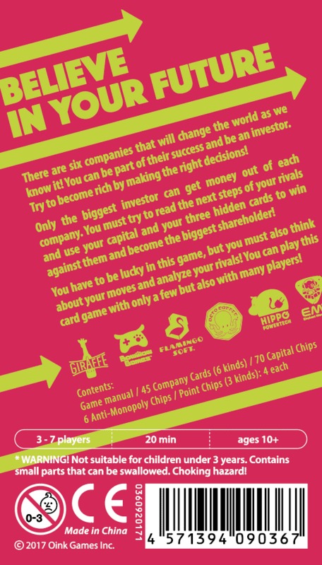 Musíte rozmýšľať o svojich krokoch, ako aj krokoch súperov, aby ste ich porazili. Využite svoj kapitál a tri skryté karty na to, aby ste zvíťazili. Pretože peniaze od jednotlivých spoločností získa iba najväčší investor.