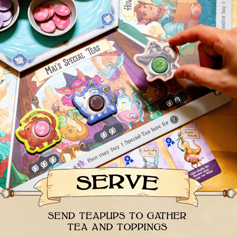 Vo fáze obsluhy sa hráči striedajú v posielaní svojich rozkošných TeaPups do rôznych butikov v meste, aby zbierali prísady a čaj z rotujúcej krištáľovej fontány, aby mohli obslúžiť čakajúce čarodejnice. TeaPups môžu hráčom navyše pomôcť zbierať silné vylepšenia, prilákať Celebri-Teas a uvariť SpecialTeas s bonusovými schopnosťami. Dômyselné umiestnenie TeaPups vám tiež môže pomôcť splniť objednávky na odber pre čarodejnice v centre mesta.
