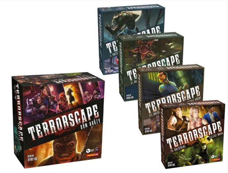 Sada základnej hry Terrorscape a štyroch rozšírení (Tlející masa, Oživlé sochy, Z jíneho světa, Zvířecí pudy) , ktoré ponúknu mnoho hororovej zábavy. Vo veľkej atmosférickej asymetrickej hororovej hre Terrorscape: Dům hrůzy sa môžete stať jedným zo stratených návštevníkov, ktorí sa snažia uniknúť (alebo privolať pomoc), alebo pána domáceho (zabijaka). Podarí sa vám uniknúť, alebo bude úspešnejší vrah? Do hry sa môžu zapojiť 2-4 hráči.