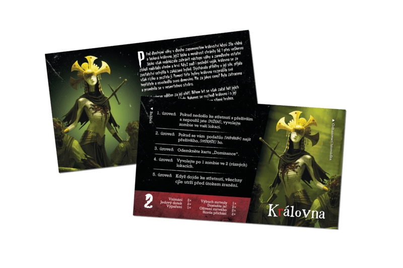 Novým zabijakom je Královna, ktorá velí armáde zombií. Podľa toho, koľko je zombií v miestnosti, taký útok môže spôsobiť. Proti zombiám sa dá brániť kušou, ktorá odstráni zombie z lokality majiteľa (alebo susediacej).