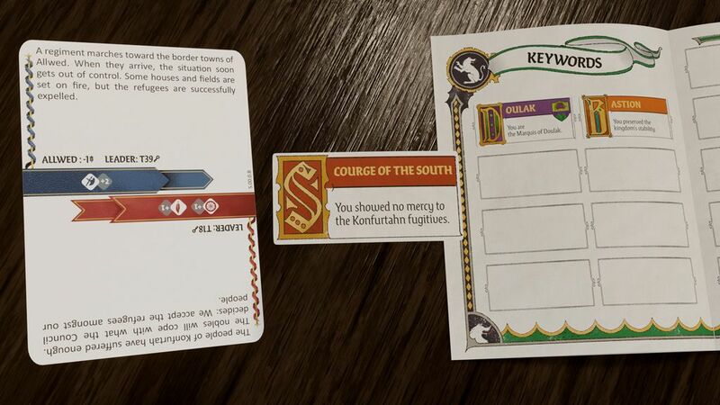 Hra prináša aj systém, ktorým môžete sledovať vaše predchádzajúce rozhodnutia, ktoré vám môžu priniesť v budúcnosti veľkú slávu, ale aj problémy. V priebehu hry sa mení aj mapa kráľovstva, ktorá je priamo ovplyvnená vašimi rozhodnutiami a môže priniesť nové pravidlá. Musíte chrániť svoje záujmy, keby mala karta dilemy priamo ovplyvňovať územie, ktoré ovládate. Okrem toho môžete aj stavať budovy, obchodovať s inými hráčmi, aby ste splnili svoje ciele, podporovať kráľovnú vo vojne na juhu či starať sa o svojich ľudí.