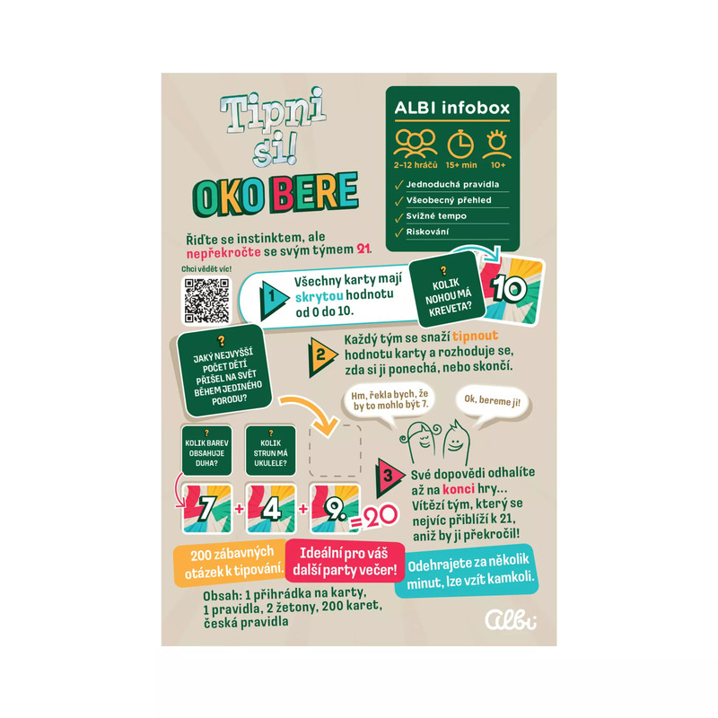 Vo vedomostnej tímovej párty hre Tipni si – Oko bere! (zabaví sa až 12 hráčov) sa snažíte odpovedať na otázky tak, aby súčet odpovedí bol čo najbližšie hodnote 21 bez toho, aby ste ho prekročili.