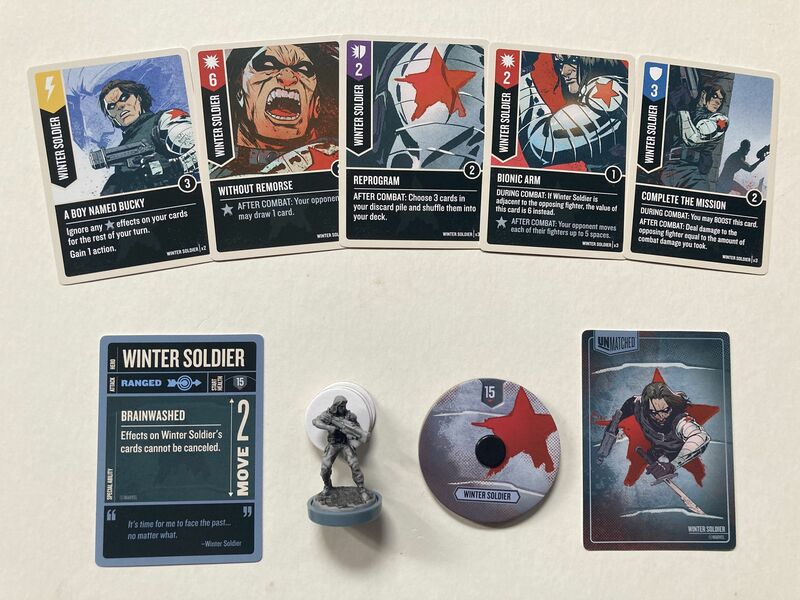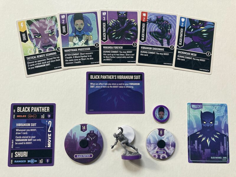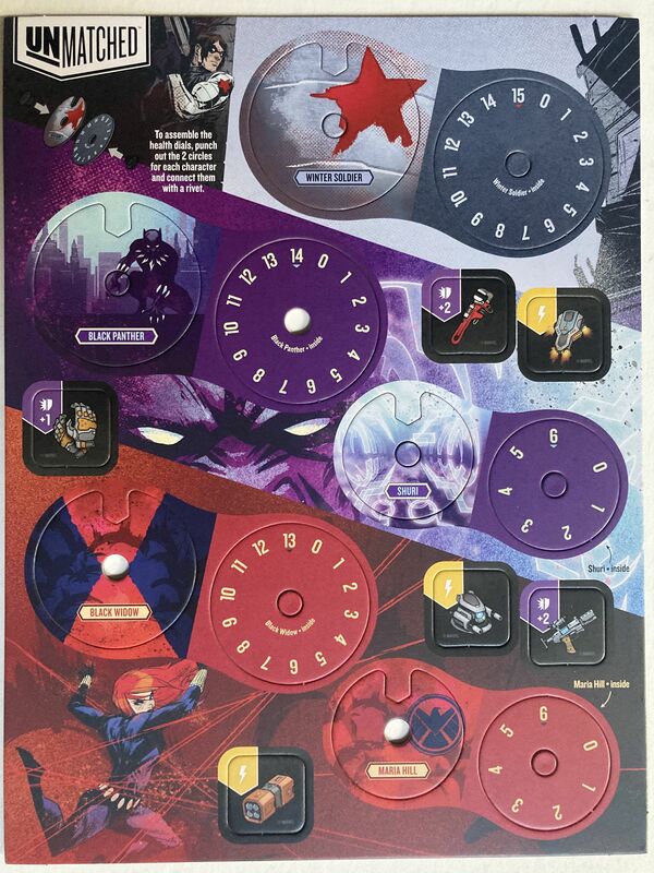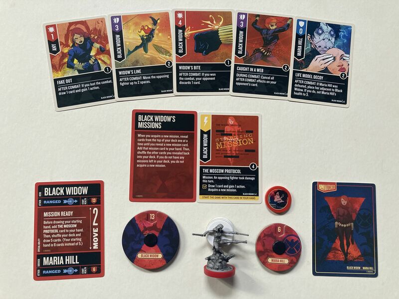 Unmatched je sada asymetrických bojových kartových hier s figúrkami. Pre dvoch, prípadene štyroch hráčov, ak skombinujete viacero herných sád. Vo verzii For King and County sa dvaja (alebo aj traja) hráči stretnú s hrdinami z univerza Marvel – Black Widow, Black Panther a Winter Soldier.