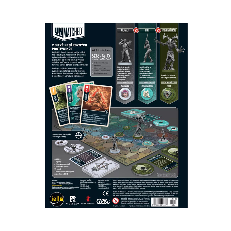 Unmatched je sada asymetrických bojových kartových hier s figúrkami. Pre dvoch, prípadene štyroch hráčov, ak skombinujete viacero herných sád. V krabici Stříbro a ocel sa dvaja (alebo aj traja) hráči stretnú s hrdinami zo sveta Zaklínača (Witcher). Nachádzajú sa tu legendárny zaklínač Geralt z Rivie so svojimi dvoma mečmi, Ciri (dieťa Staršej krvi a Pani svetov, ktorej pomáha s ovládnutím jej síl jednorožec Ihuarraquax) a Prastarý Lešij (prastarý ochranca lesov a jeho obyvateľov).