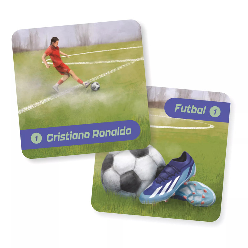 Keď ste na ťahu, vyberiete si dvojicu kartičiek. Ak sa vám podarí nájsť správnu dvojicu informácií napr. cyklistika a Tadej Pogačar (ak si nie ste istí, môžete si skontrolovať číslo), môžete pokračovať v hľadaní ďalších dvojíc.
