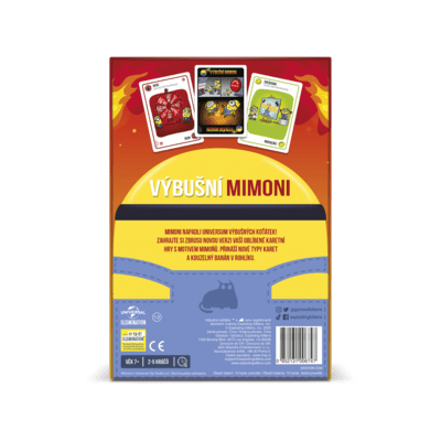 Keď hodíte do mixéru polku banánu, Mimoňov a jednu z najobľúbenejších kartových párty hier Výbušná koťátka (Exploding Kittens) dostanete hru Výbušní Mimoni. Takže cieľ ostáva ten istý - zotrvať v hre čo najdlhšie a nevybuchnúť. No tentokrát vás hrou budú sprevádzať namiesto mačiek obľúbené žlté postavičky - Mimoni. Oproti pôvodným Výbušným koťátkam pribudli klonovacie karty.