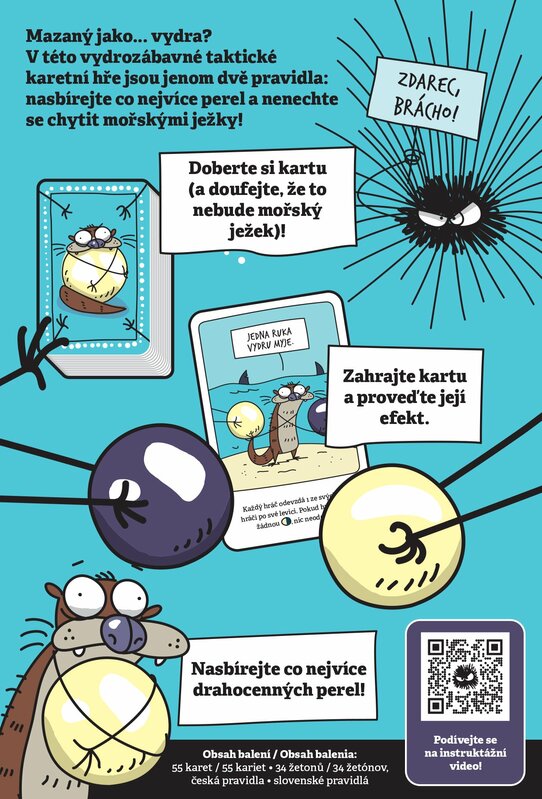 V rýchlej kartovej hre vhodnej pre rodiny Vydry sa 3-5 hráči stretnú v súboji o to, ktorým vydrám sa podarí potopiť po najväčšie množstvo periel. Treba si však dávať pozor, pretože perly sú strážené morskými ježkami a keď sa ukážu pri potápaní nezískate nič.