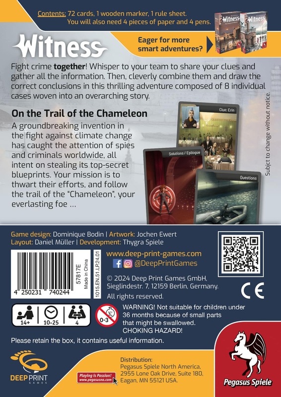 Witness je detektívna hra, v ktorej bojujú proti zločinu spolu presne štyria ľudia ako členovia tajnej organizácie „Witness Agency“!
