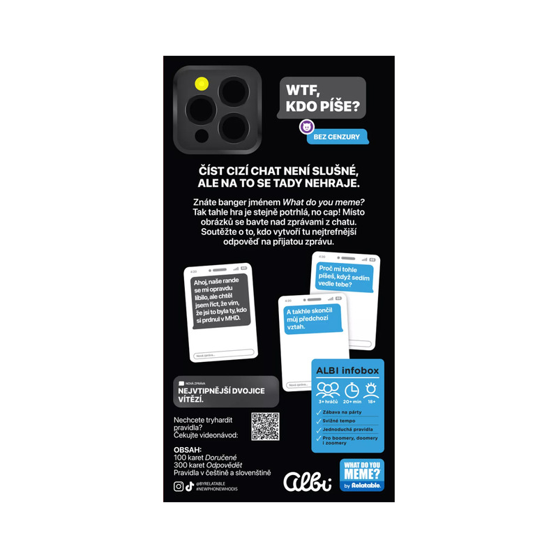 V bláznivej párty hre Wtf, kdo píše? sa minimálne 3 hráči (môžu byť kľudne aj 10, či 15) snažia nájsť čo najvtipnejšie odpovede na správy, ktoré im pristáli do chatu.