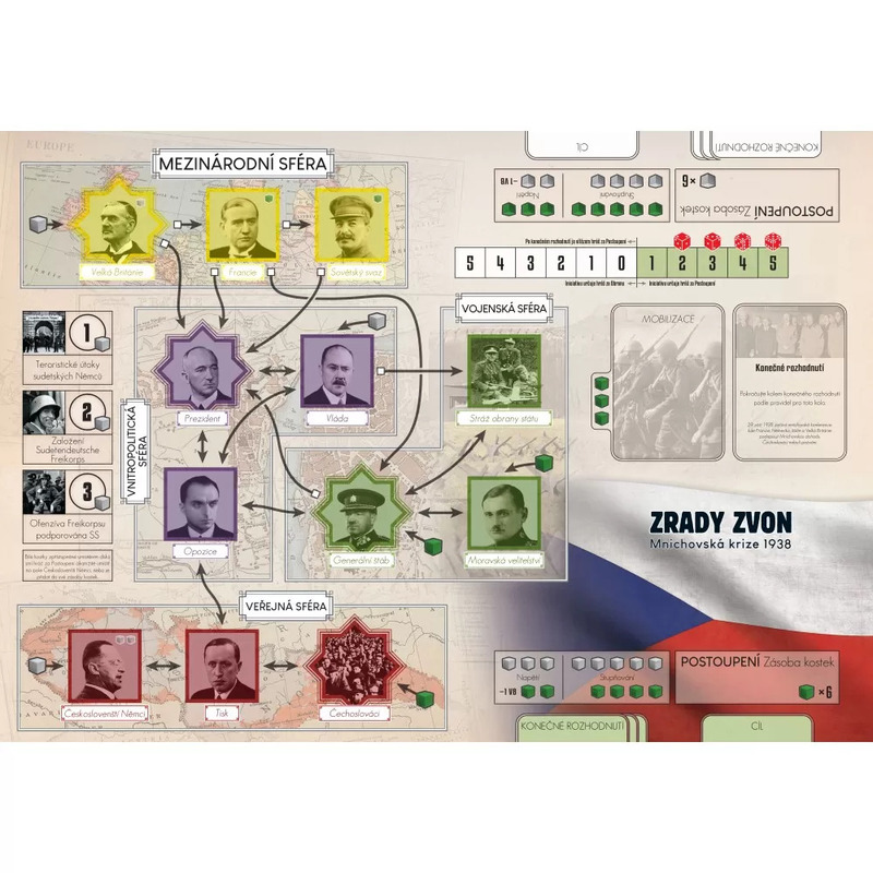 Zároveň sa zvyšuje nemecká aktivita (vojenského a paramilitantného rázu) v Sudetách, čo môže vyústiť aj do mobilizácie armády. V poslednom kole sa musí hráč za Obranu pokúsiť zastaviť hráča za Postoupení v snahe dovoliť prezidentovi Benešovi prijať túto významnú historickú udalosť (Mníchovskú dohodu).